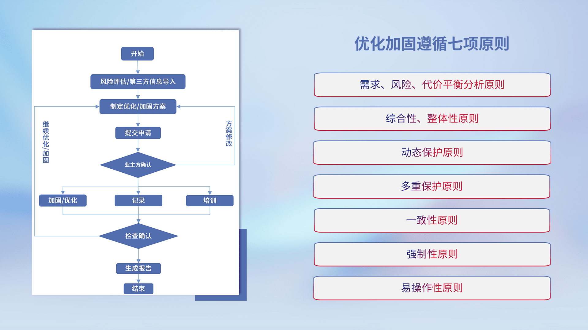 最大程度利用现有资产,,对评估发现的问题进行封堵与整改,,,防止漏洞被利用,,,,提升整体网络安全性,,为客户带来高标准的优化加固服务。。